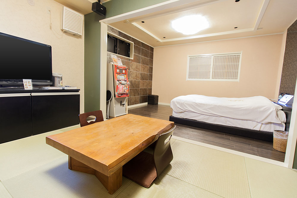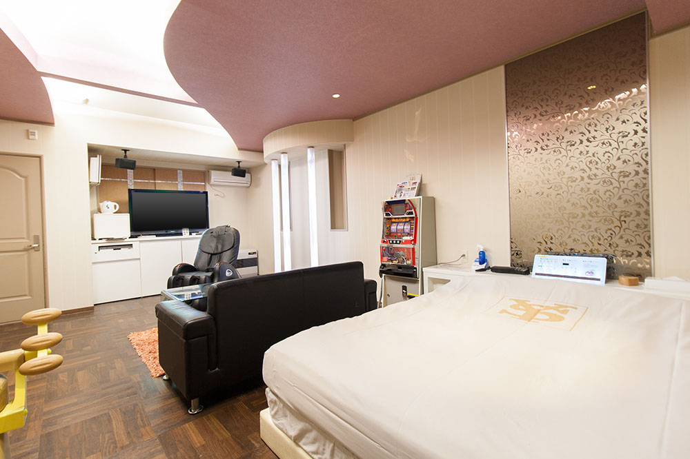 42インチプラズマTV・電子レンジ・カラオケ(B-Kara)・スロット・DVD/VHSプレーヤー・低反発マット・浴室テレビ・サウナ・ラブチェア